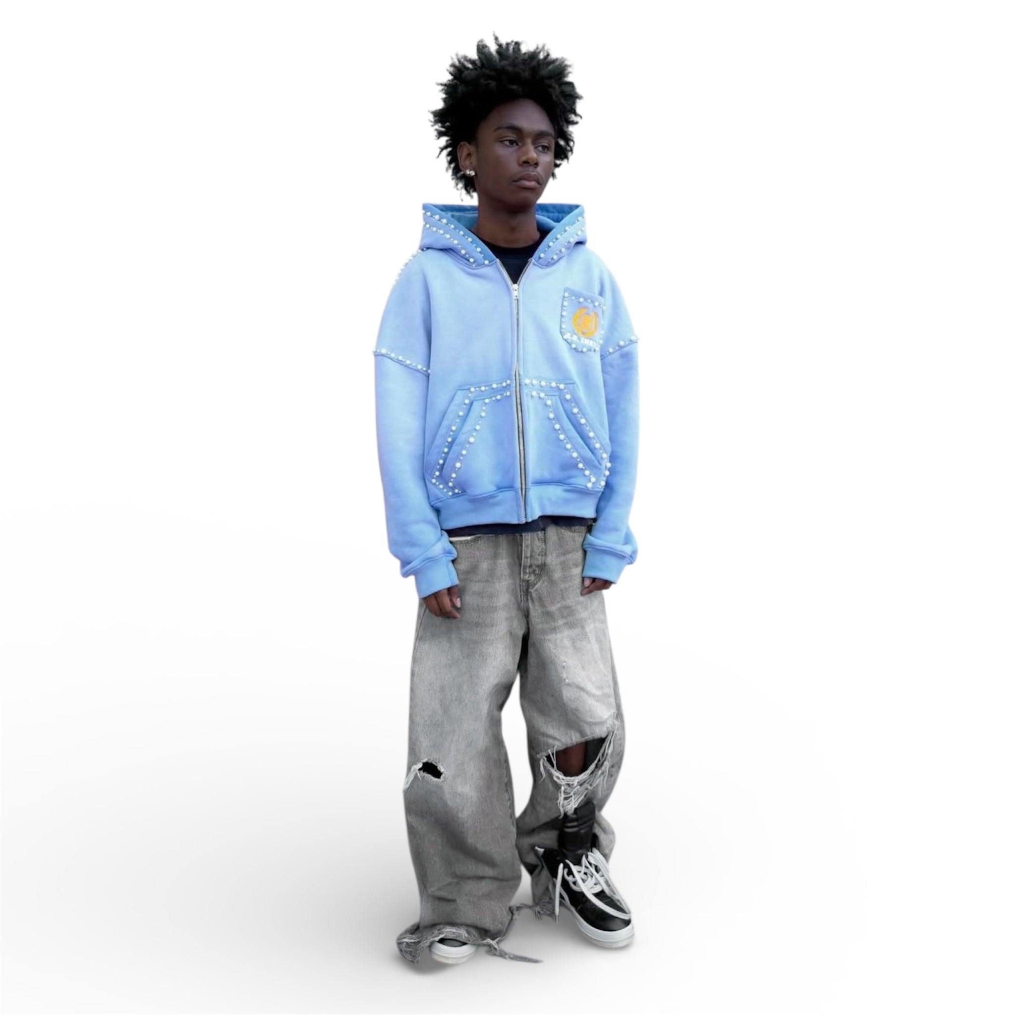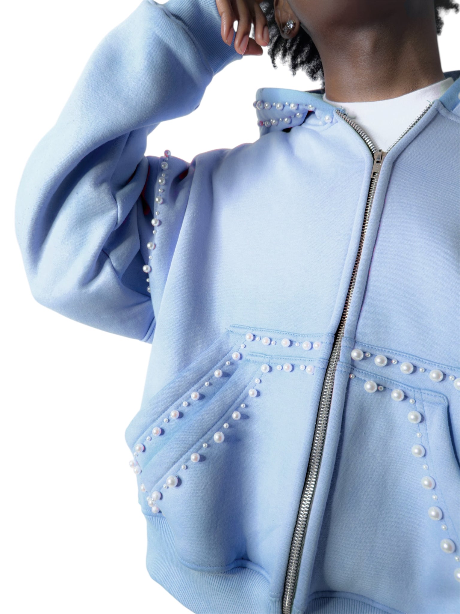 fully hand placed pearlized garment